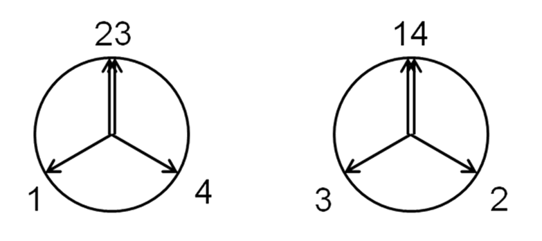 Crank star scheme of a 4 -cylinder engine with 3 cylinder